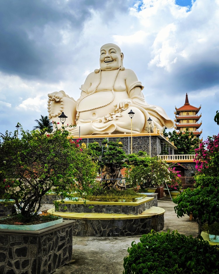 On the way back we stopped at Vinh Trang Pagoda which is the largest pagoda in Tieng Giang. It is surrounded by gardens, ornamental trees and bonsai, creating a relaxing atmosphere. The huge statue of the Happy Buddha, or “Bo Dai” in Vietnamese, will surely impress you.
